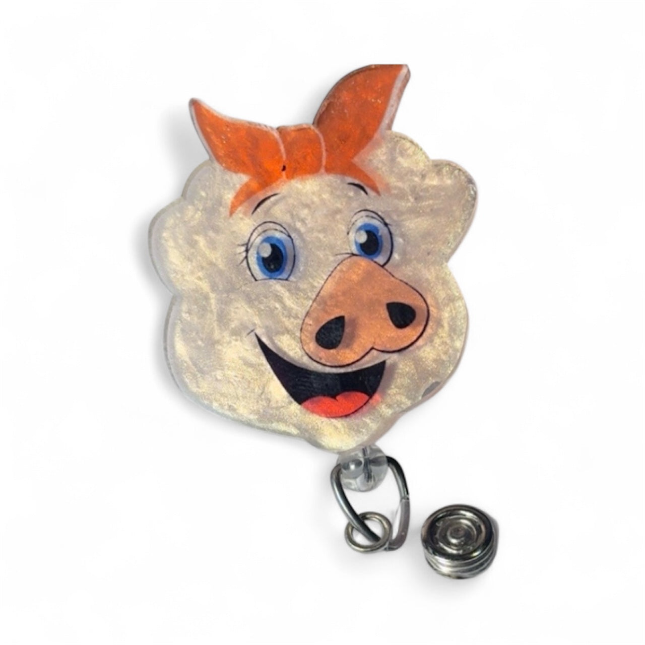 pig with red bow no beads alligator clip